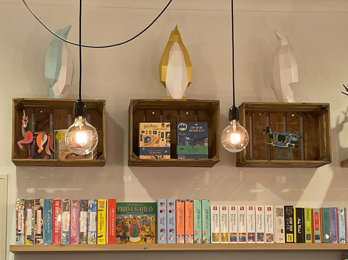 Another family member is The Other Shop with shops in Antwerp and Gent. Here you see some images of the shop in Antwerp. The paper kits are presented in a round cabinet made from old wooden cable blocks. Customers are able to walk around it and see the product in different angles. Presenting a paper craft showmodel multiple times can enhance the impact it makes on a customer. The three penguins show that clearly. By placing them on a ‘stand’ the papercraft gets even more impact. The last picture shows the 3D puzzles small and medium in our wooden display boxes. The customer can scroll through the packages easily to select the version he or she likes.
